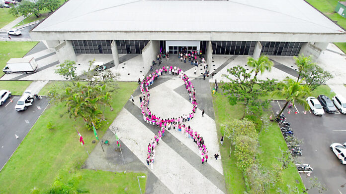 Campanha iniciou com laço humano, exposição fotográfica e mensagens de esperança sobre prevenção ao câncer